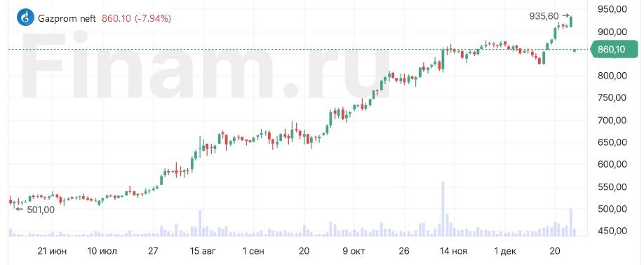 Лидером падения оказались акции «Газпром нефти», которые на открытии обвалились на 8,49% на дивидендной отсечке. Внеочередное собрание акционеров компании ранее одобрило выплату дивидендов за 9 месяцев 2023 года в размере 82,94 рубля на акцию, закрытие реестра – 27 декабря.