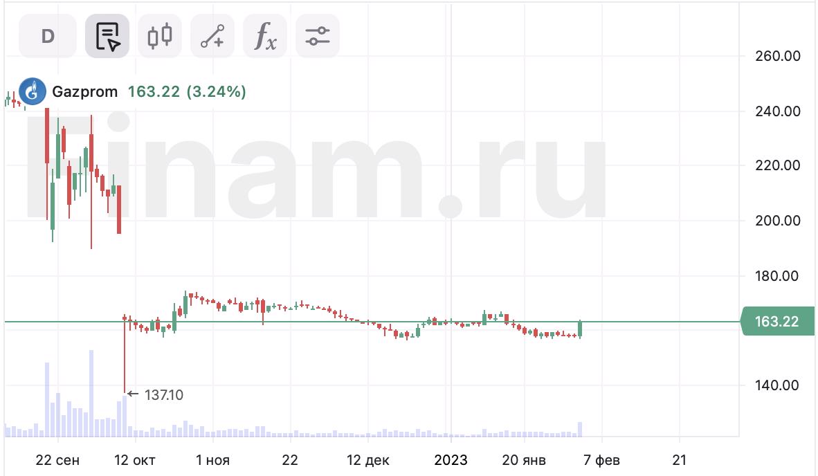 Акции «Газпрома» к 16:18 мск прибавляют 3,24% до 163,24 рубля, свидетельствуют данные торгов.