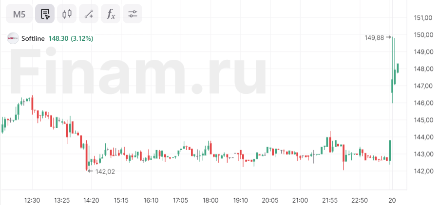 К 10:11 бумаги «Софтлайна» растут на 3,12%, до 148,3 рубля за акцию, свидетельствуют данные торгов на Московской бирже.
