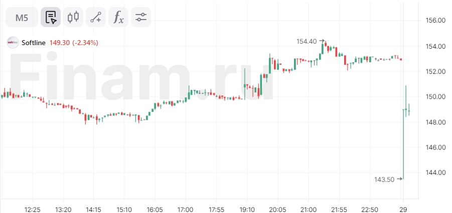 К 10:12 мск котировки «Софтлайна» снижаются на 2,34%, до 149,3 рубля за акцию, свидетельствуют данные торгов на Московской бирже.