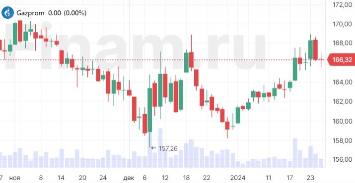 В последнее время акции «Газпрома» всё чаще выглядят лучше рынка. Возможно, инвесторы вспомнили о вероятной выплате дивидендов за 2023 год. Последний раз дивиденды газовый гигант выплачивал в октябре 2022 года, тогда они составили 51,03 рубля на акцию, а дивидендная доходность бумаги — 26%.