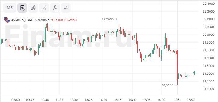 Рубль на валютной секции Московской биржи утром выглядит стабильным к корзине валют. Так, к 8:05 мск доллар снижается на 0,24%, до 91,53 рубля, евро в минусе на 0,1%, до 100,9, юань торгуется у отметки 12,76. На форекс-рынке курс Usd/Rub находится на уровне 91,41.