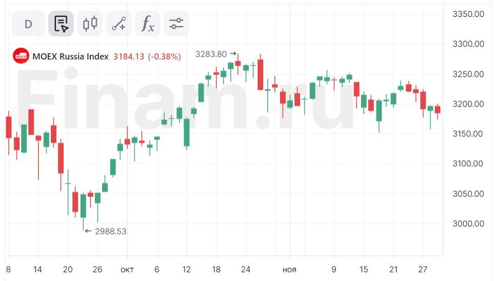 Аналитики «БКС Мир Инвестиций» ожидают, что индекс МосБиржи продолжит торговаться в широком диапазоне 3000–3300 пунктов, движение в рамках краткосрочного нисходящего канала продолжится — пока нет серьезных причин для смены тренда или выхода из «боковика».